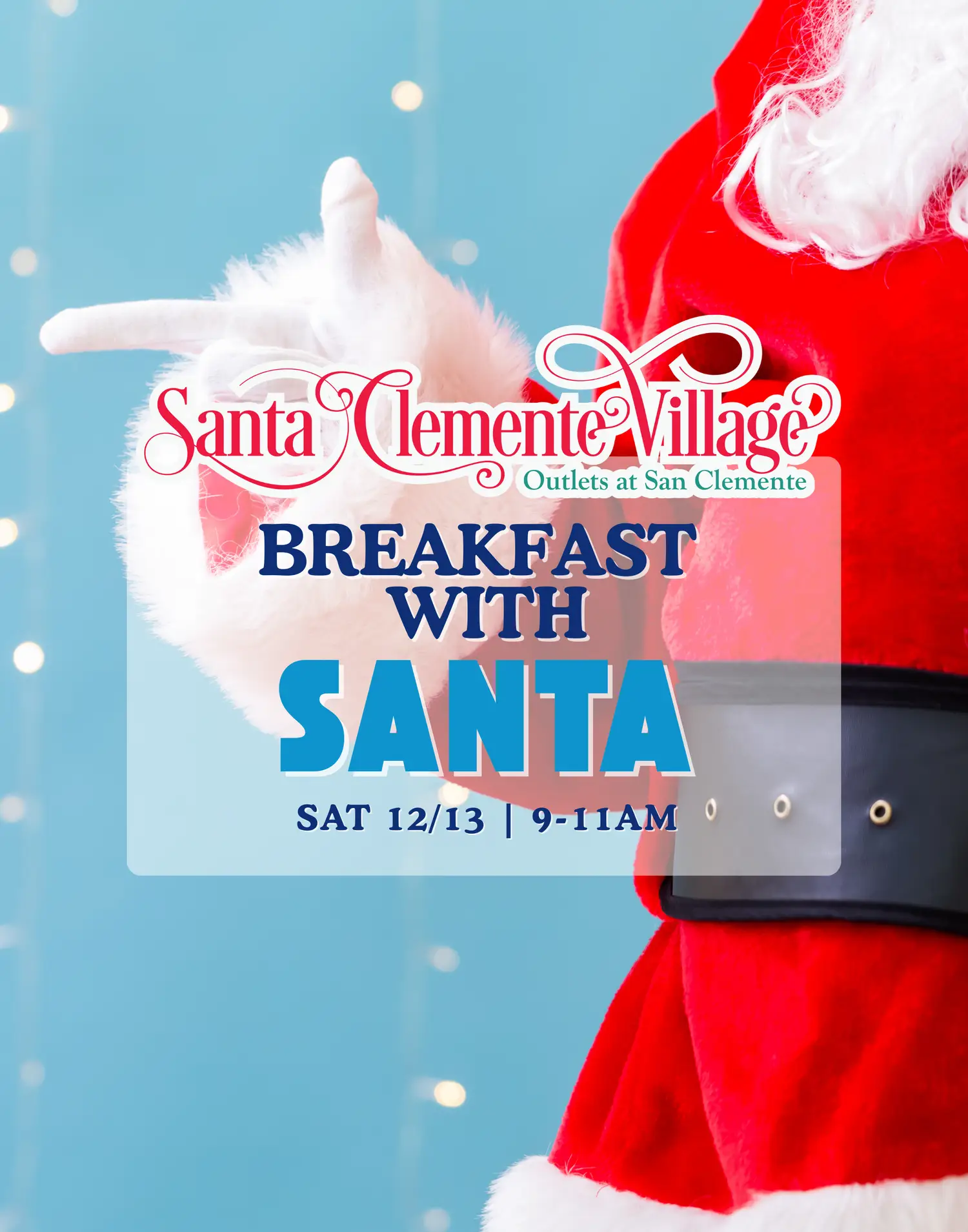 Get ready for a day filled with holiday magic and family fun! Join us for Breakfast with Santa, packed with festive activities to get everyone in the holiday spirit. Enjoy a delicious breakfast catered by Ruby’s Diner and meet Santa Claus! Kids can write letters to Santa and explore creative fun with balloon twisting, face painting, live entertainment and more. Plus, capture the season’s joy with memorable photo ops in Santa Clemente Village!