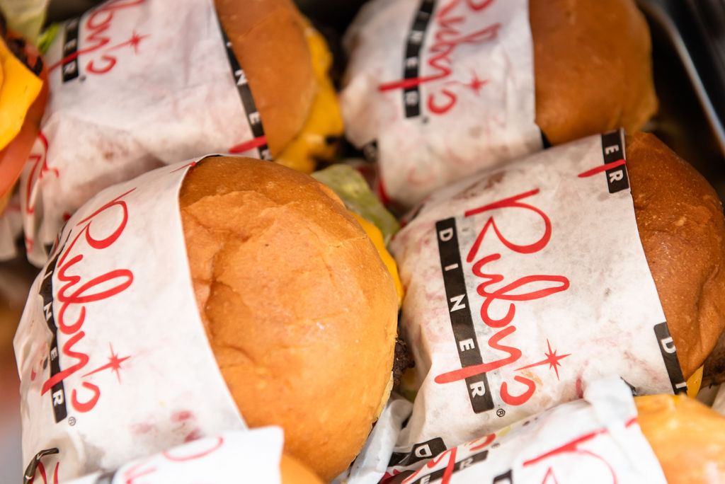 Dine in Oak Tree Court with your choice of Ruby’s burger or caesar salad, plus chips and a drink.